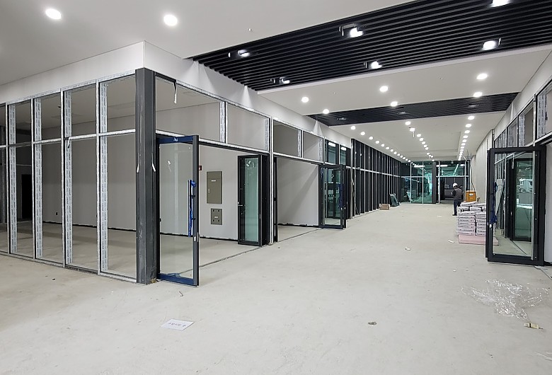 일반폴딩도어 | 인천 아파트형 공장 1층 삭가에 시공된 폴딩도어