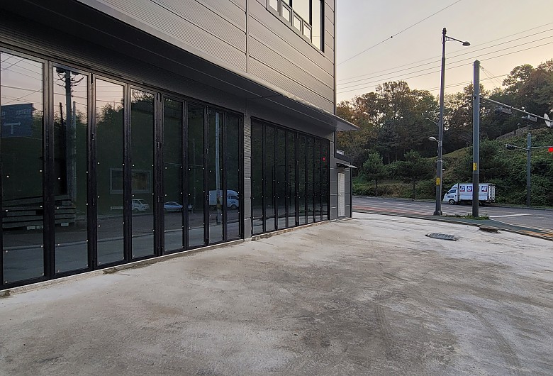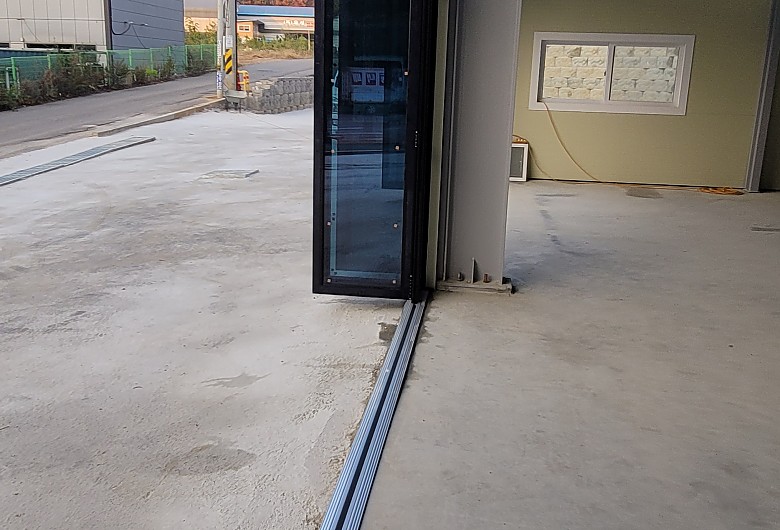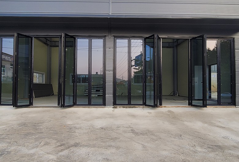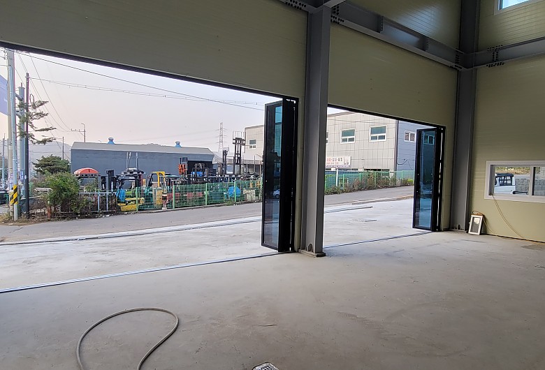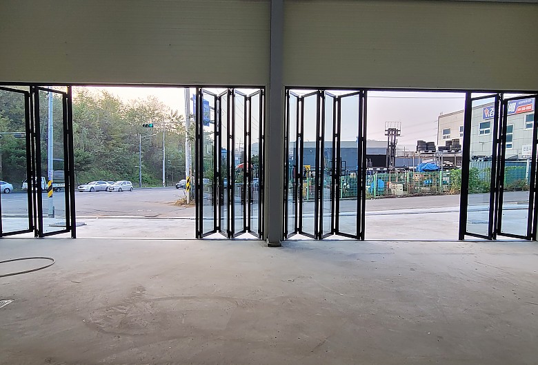 신축 차량 정비소 카센타에 설치된 단열 폴딩도어입니다.