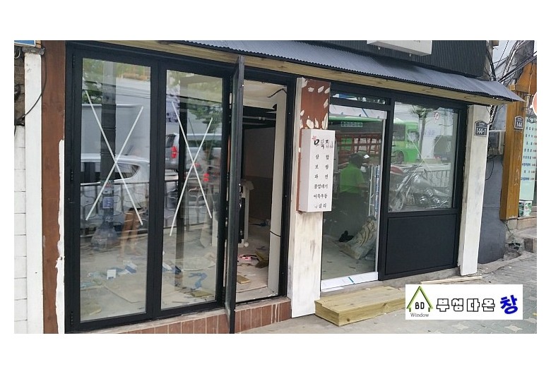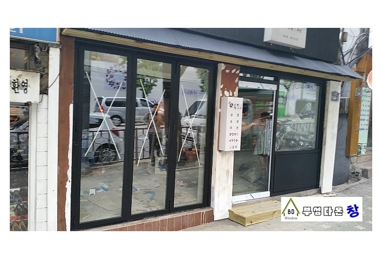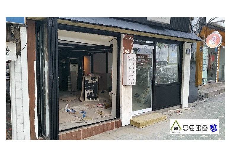 일반폴딩도어 | 마포구 포장마차 폴딩도어 페이지 정보 작성자 제작관리자 작성일16-07-20 18:07 조회8,080회 댓글0건 본문 After시공후 갤러리 색상 : 블랙 유리 : 16페어복층유리 하부 : 매립 / 이전글 다음글 목록