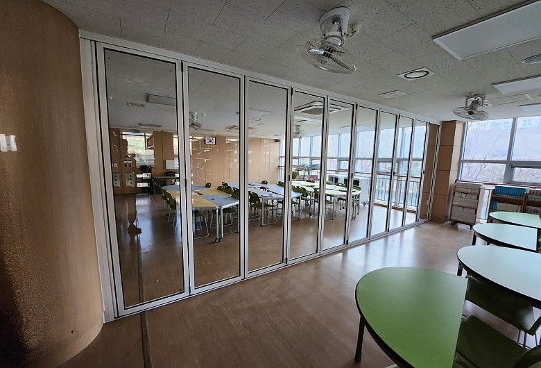 수원의 한 중학교에 폴딩도어 설치 사진입니다.