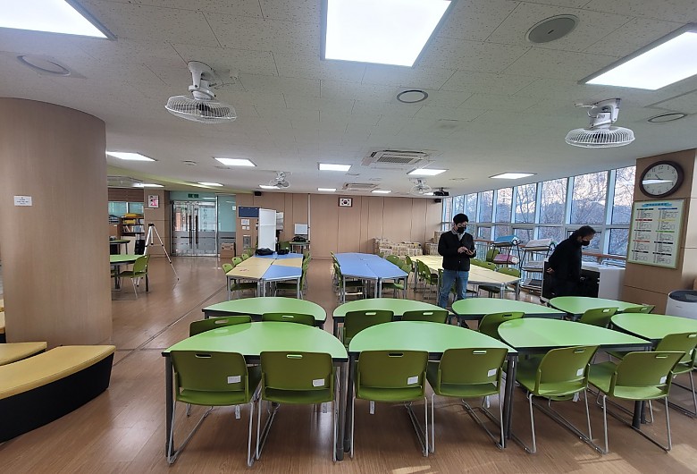 수원의 한 중학교 입니다. 공간이 너무 넓어 냉 난방이 원활하지 않았고 학생들이 많은 곳이라 주위의 소음이 많은 편이였습니다. 한쪽을 폴딩도어로 칸막이를하여 좋은 환경을 만들었습니다.